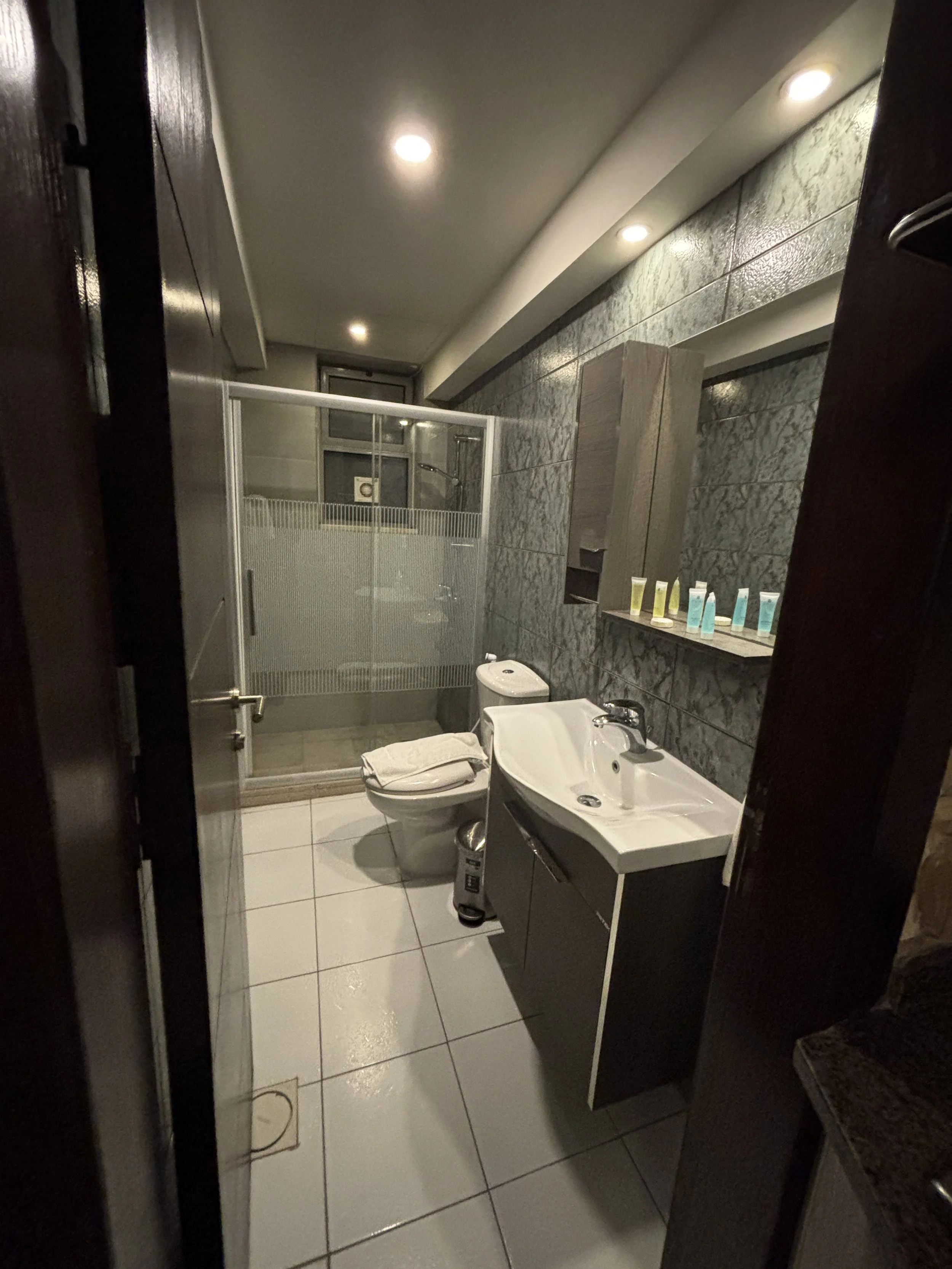 This is a 3-star, so not luxurious, but it delivered in everything it promises. The room was actually quite big, it was more of an apartment, since it has its own kitchen and living room. And everything was pretty clean. The bathroom had toiletries, as well.