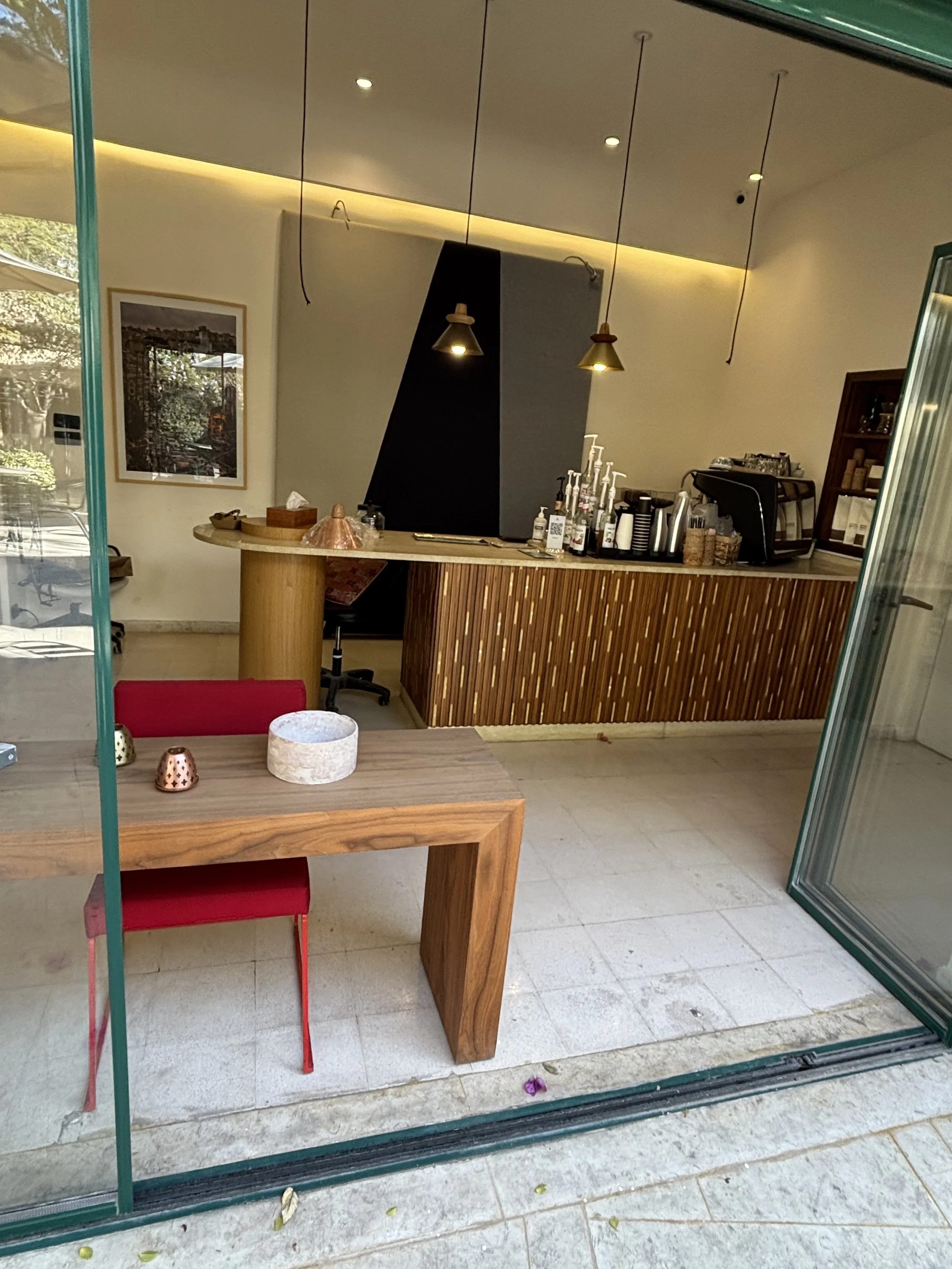 It is located in a sort of indoors courtyard off one of the main commercial streets and its specialty is Middle Eastern “street food”, that is, several types of hummus (and its derivatives), falafel and the like.