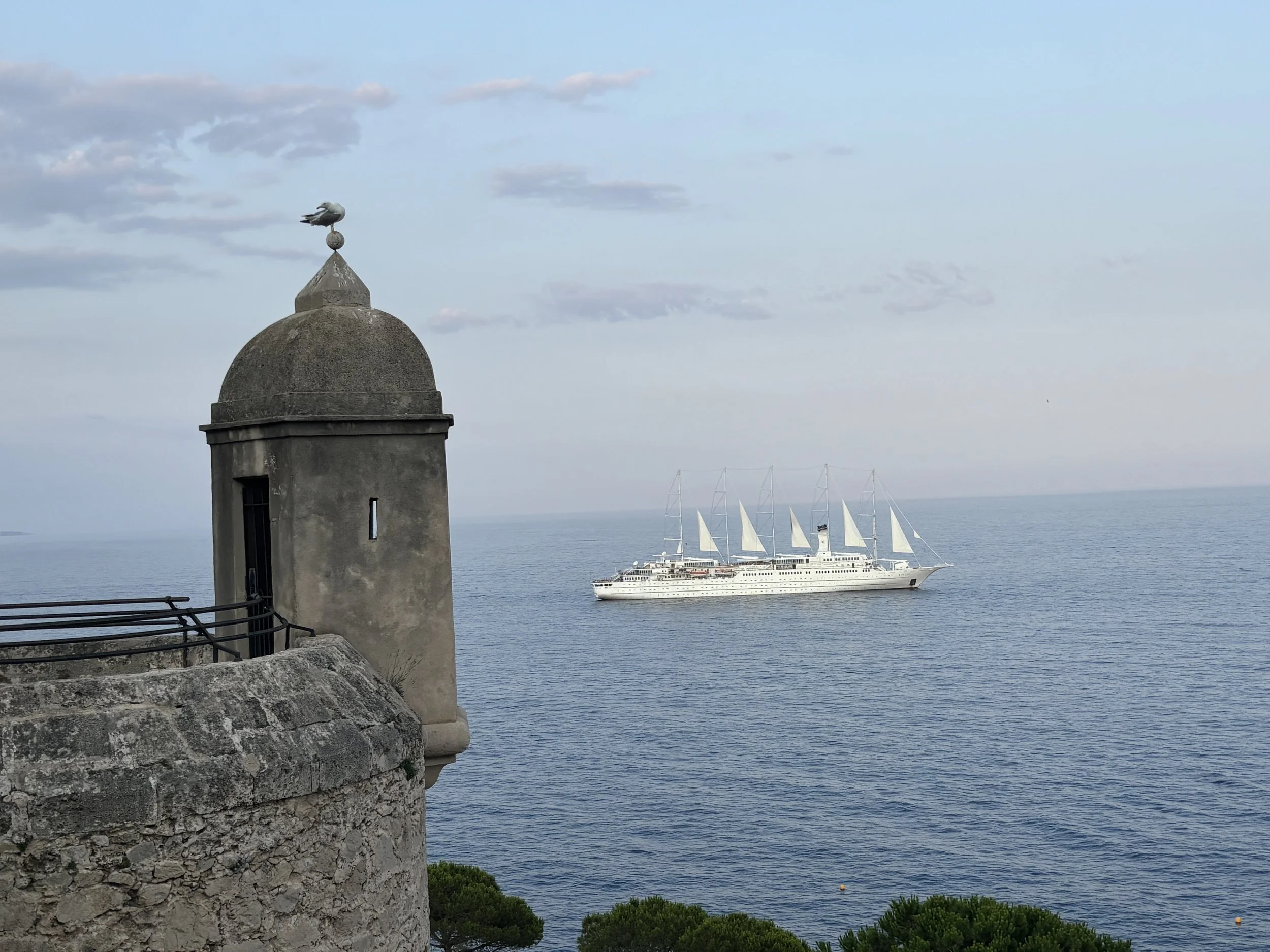 The Windstar Cruises “Wind Surf” as seen from the ramparts of Old Montecarlo