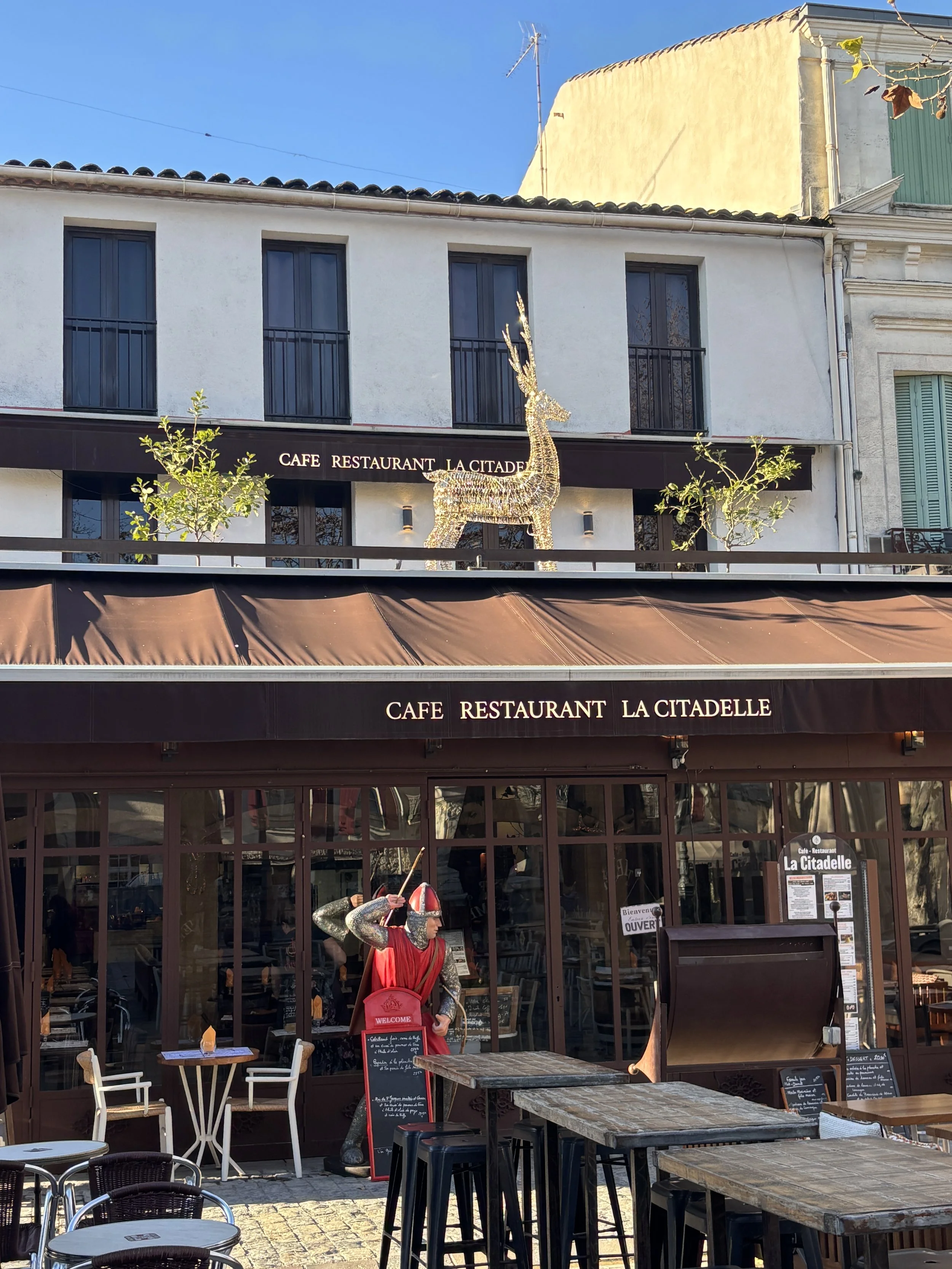 This restaurant is located on the main square of Aiguesmortes (Place Saint Louis).
