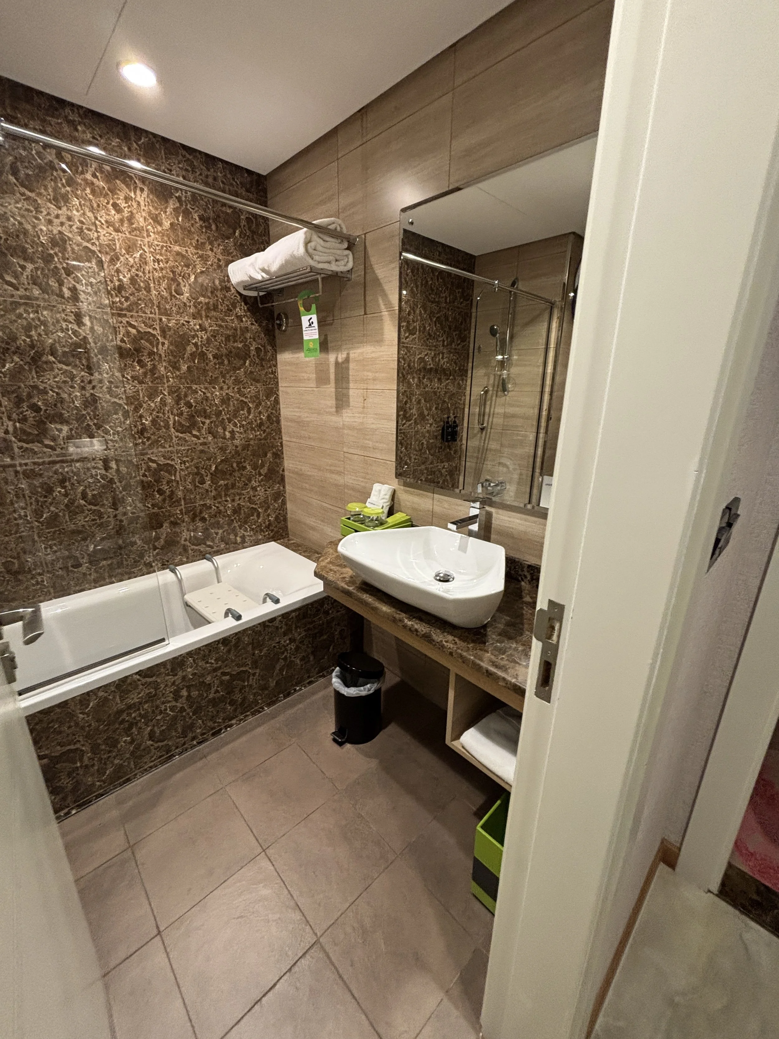 Here the interesting thing was that we were upgraded to an apartment-type room, which means, essentially that you get also a living room, in addition to the bedroom.