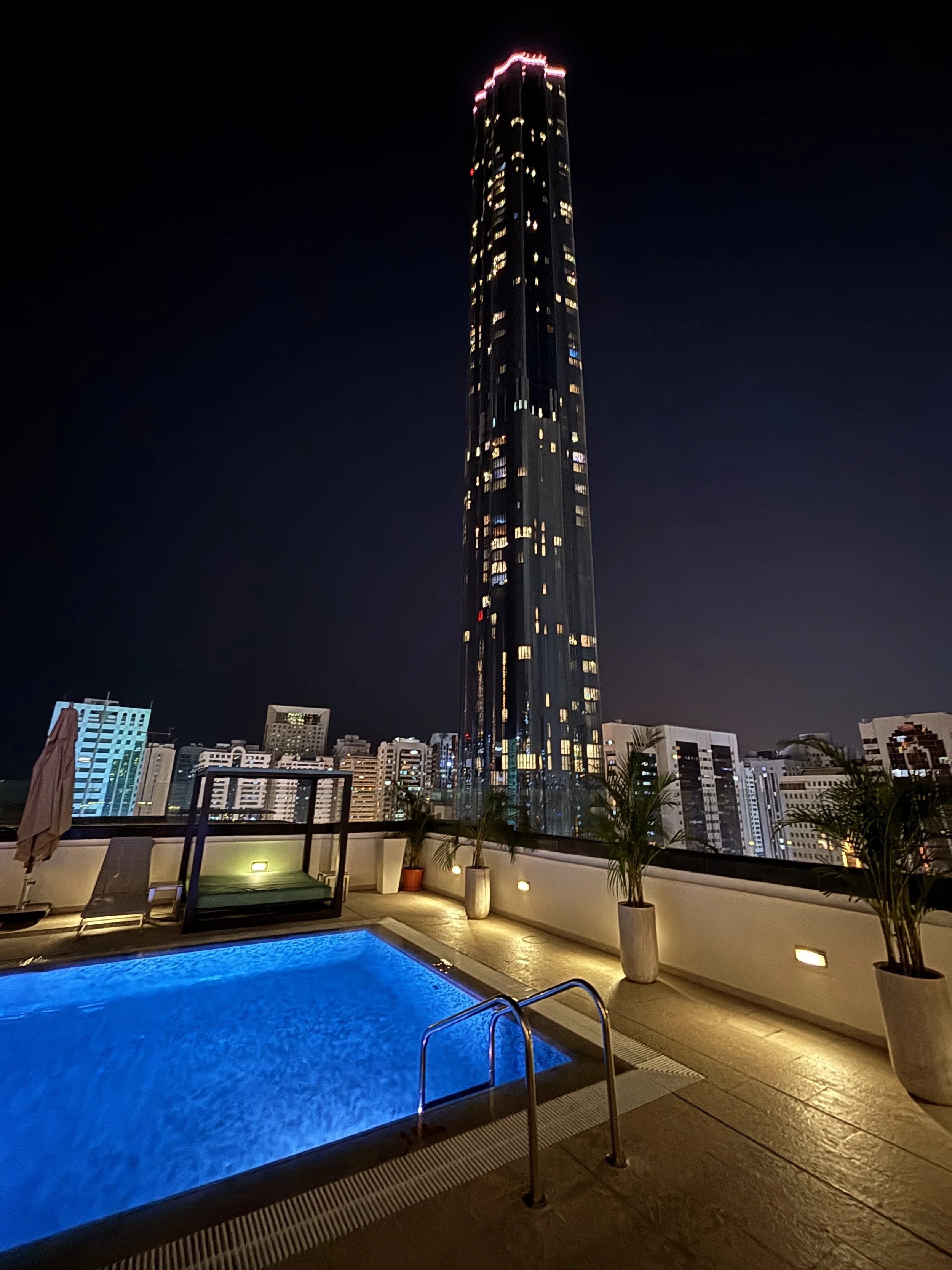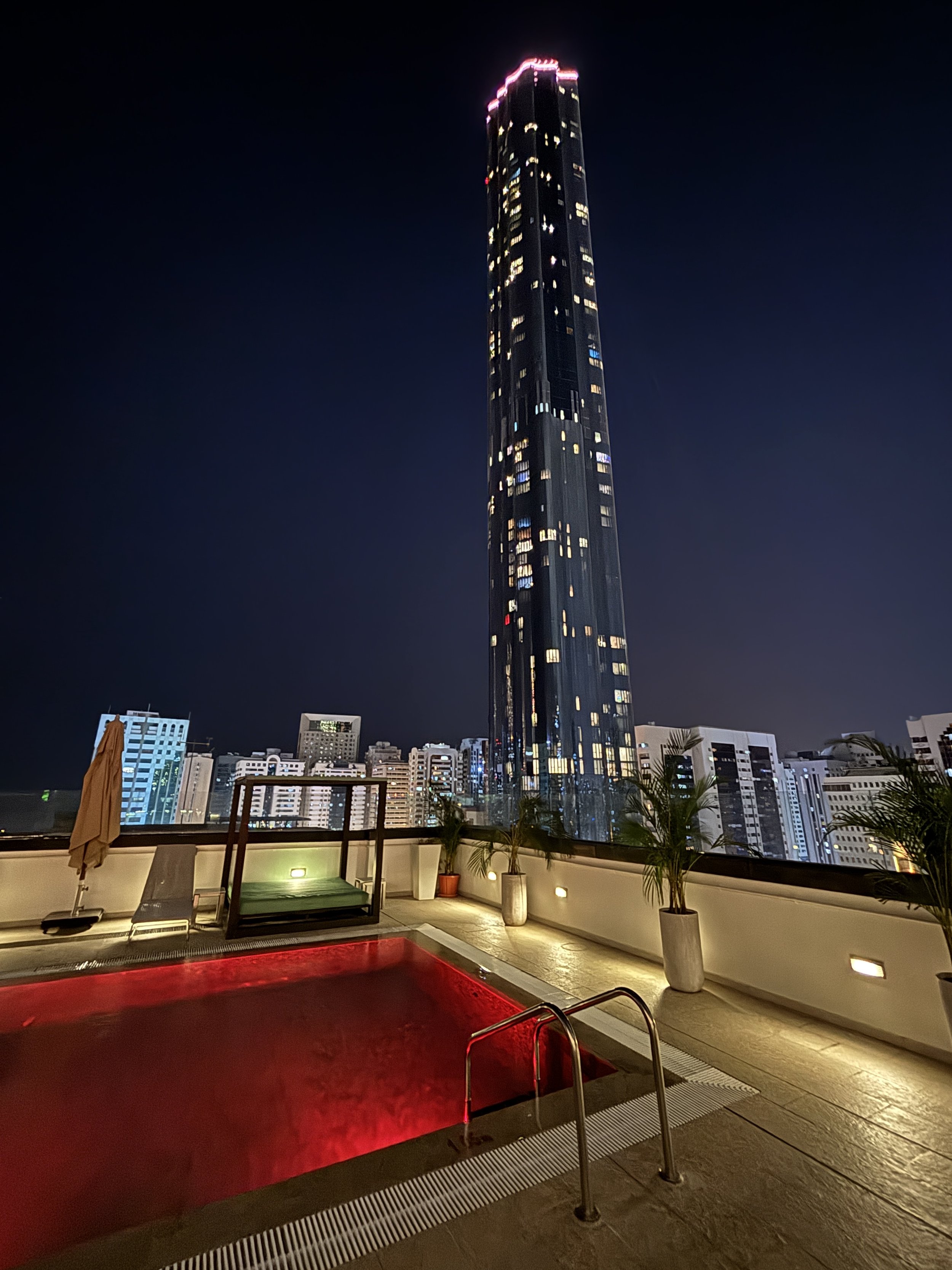 It also has a rooftop bar and restaurant with a swimming pool that has the ability to change colour every few minutes (see below). The food was pretty good and substantious and the view, not bad at all!