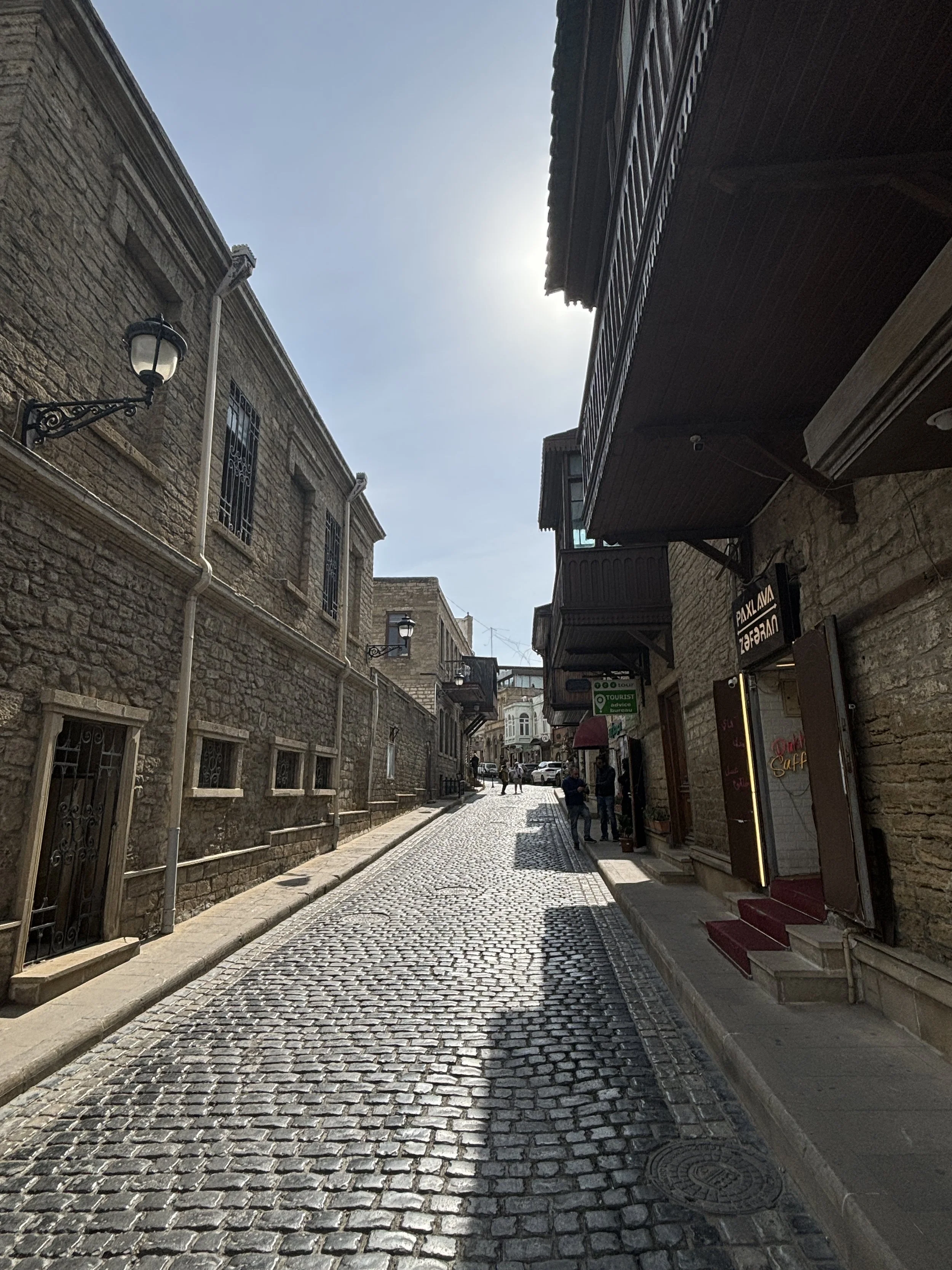 You have some nice views of the Flame Towers from here and the outer wall of the old town is within walking distance, all downhill. To get there you pass several streets that, unlike the old town, have not (yet) been renovated, so you can get an idea of how things may have looked like just a few decades back in time.