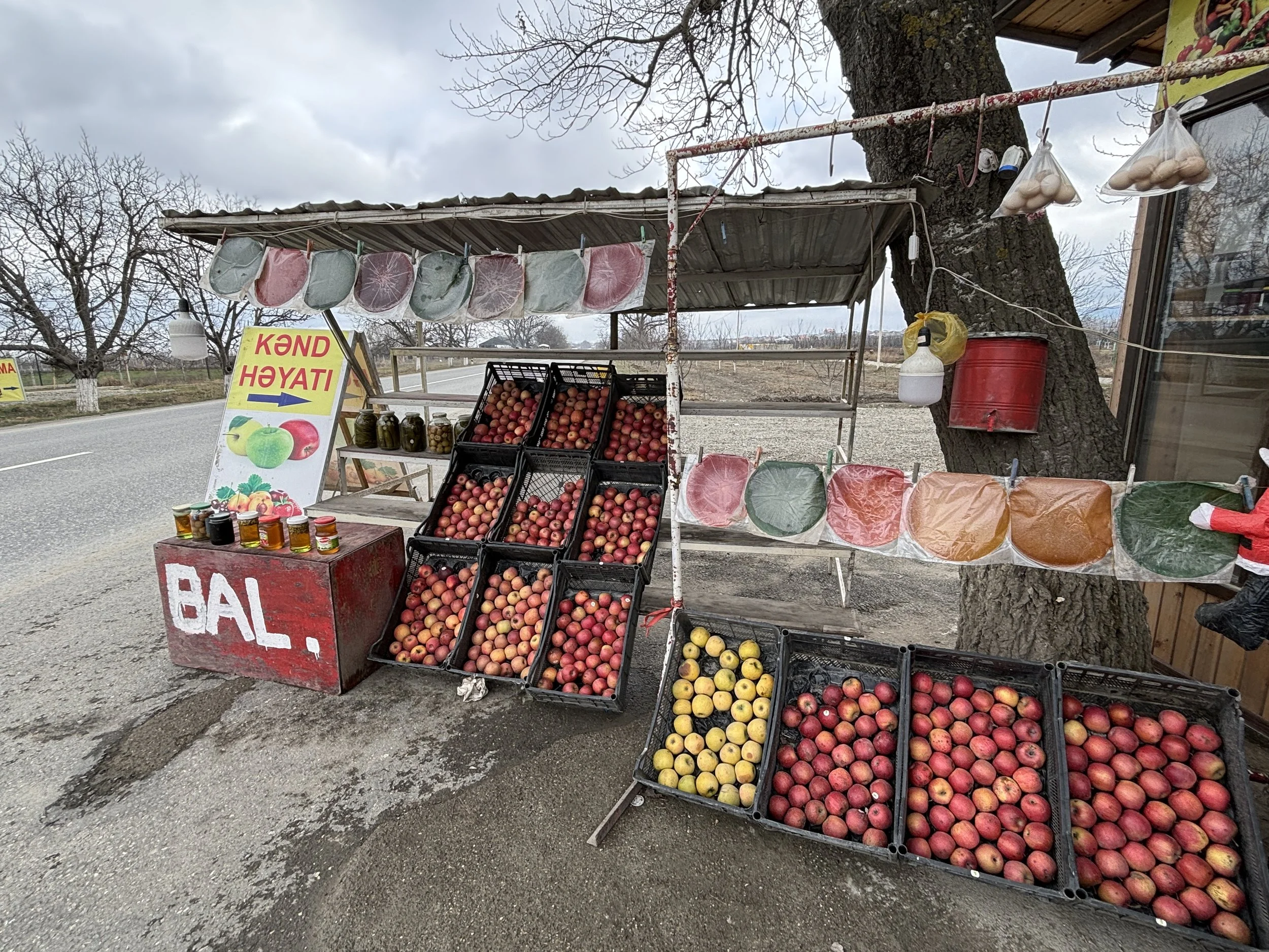 Before getting to destination, though, if you have the chance I suggest stopping at any of the many roadside produce shops that you find throughout Azerbaijan.