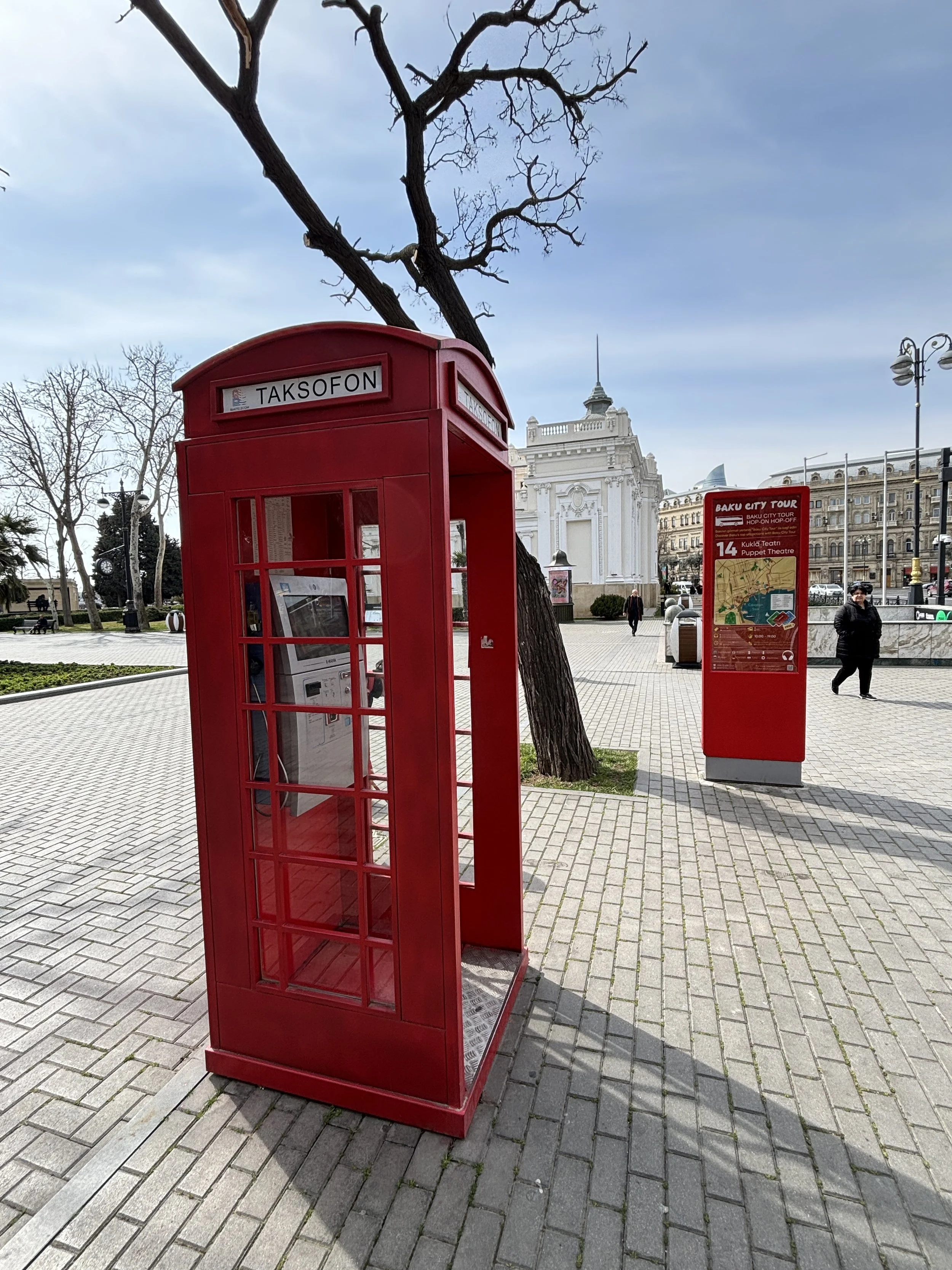The taxis are not apparently the only bout of anglophilia in the streets of Baku, since I managed to spot at least one red British-style phone booth!
