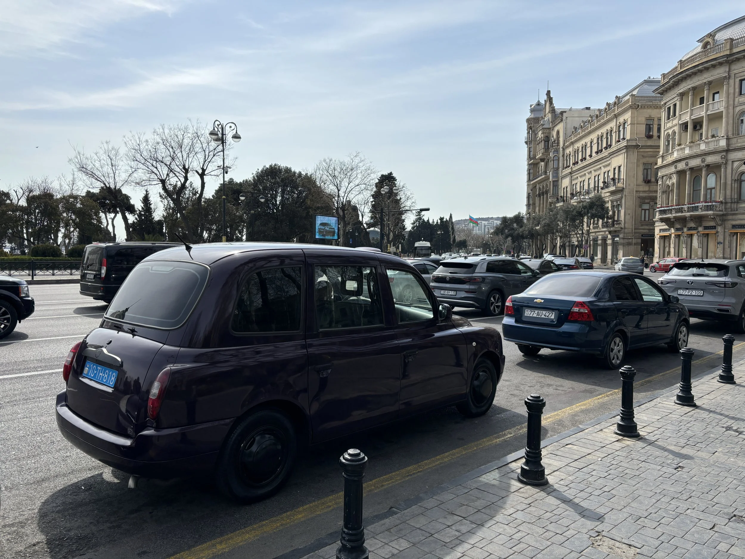 A curious fact about Baku is that it has a fleet of London-style black cabs. They were, in fact, imported from England around 2011! (although the Bolt ride-hailing service is also available in Baku)