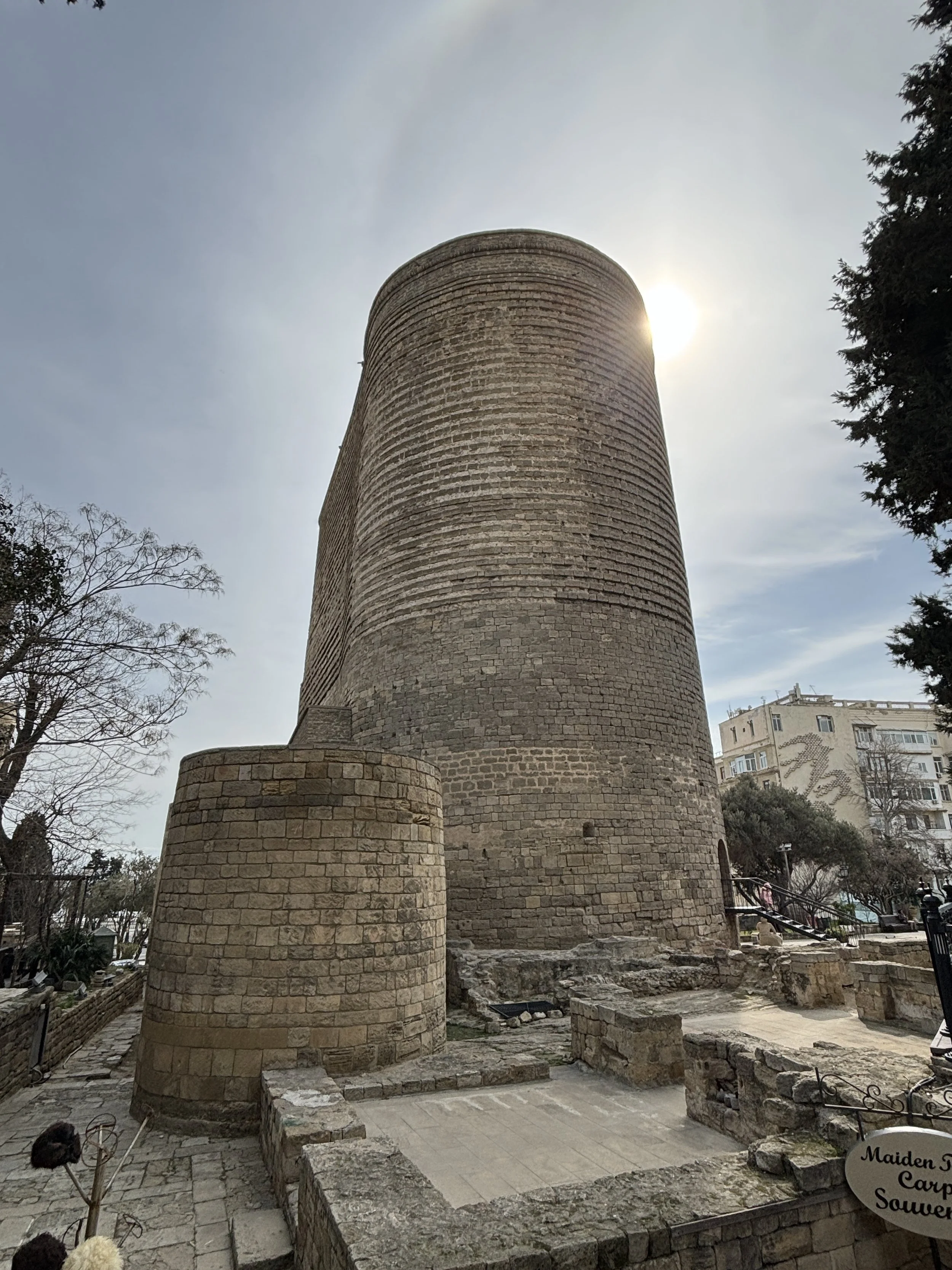 One of the highlights of Baku’s old town is the Maiden Tower (Qız Qalası), a round 29-meter tall stone tower with a view point at the top. The current construction is medieval, but it looks like there has been some sort of tower at this spot for thousands of years and archaeologists can not agree as to the original purpose, whether it was religious or military.