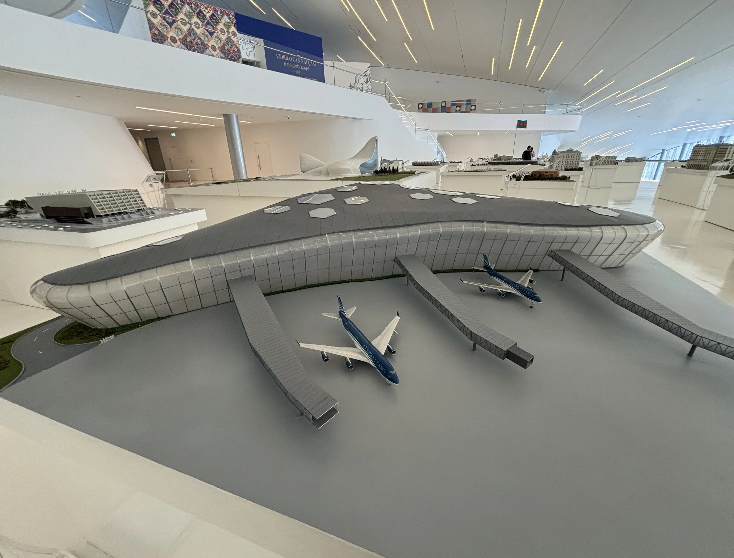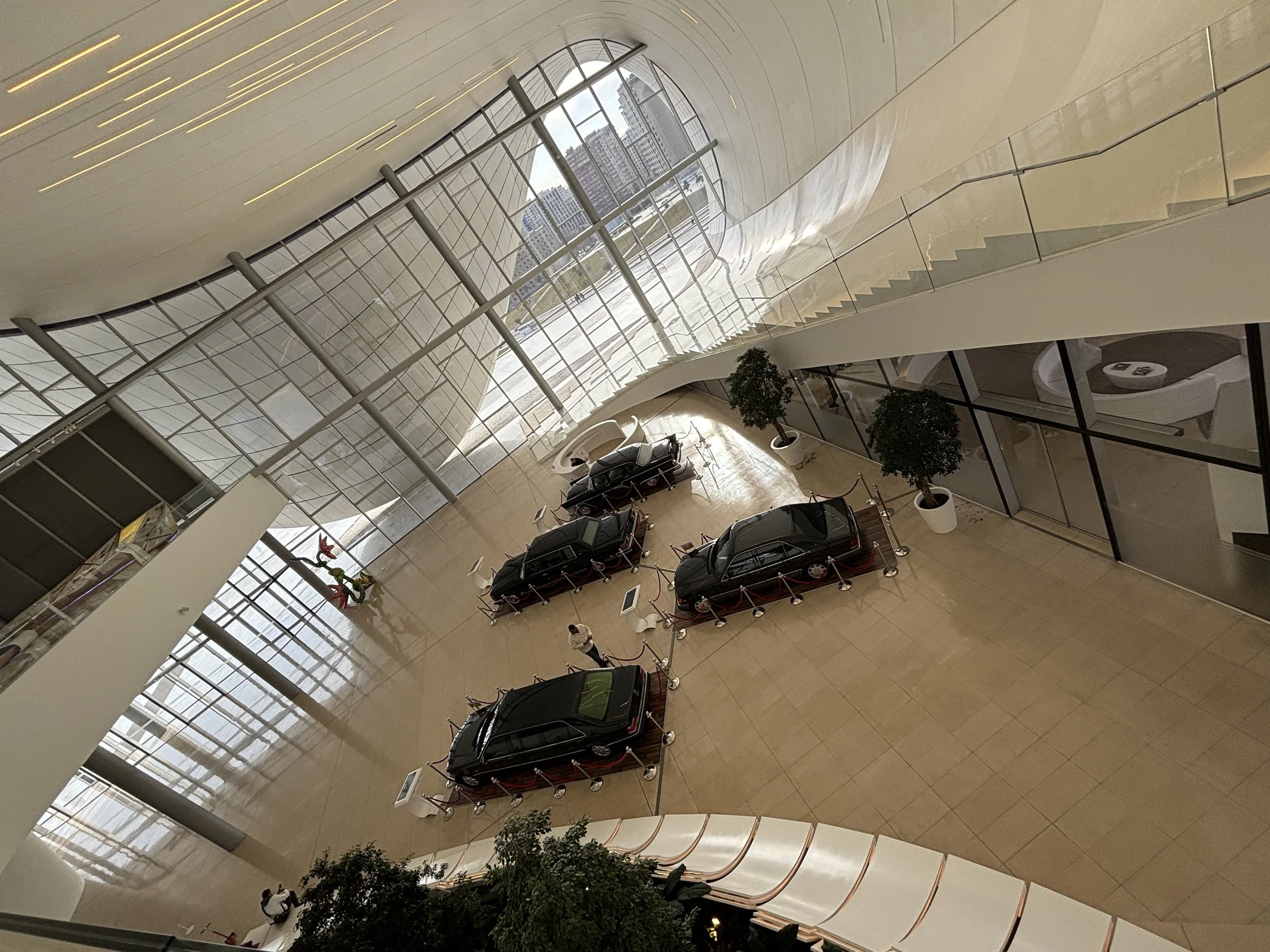 First there is the architectural part, as well, with the internal spaces organized in a rather unconventional way. But the center houses also several collections and exhibits, ranging from art to the history of Azerbaijan and the life and works of the person that the center is named after, Heydar Aliyev, who ruled Azerbaijan both during the Soviet period and after independence and founded the dinasty that still rules the country).